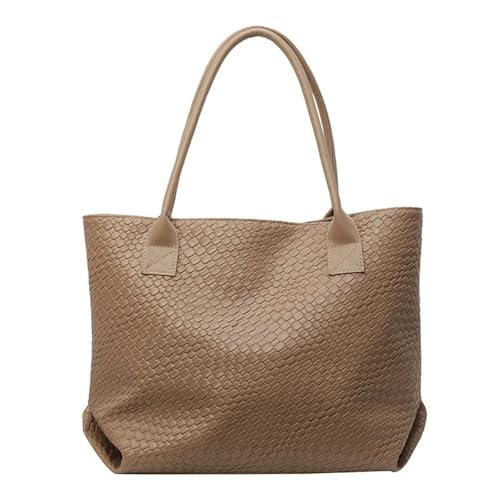 GYTTDERFL Sac En Cuir Tressé Sac fourre-tout à motif tissé for femme, élégant sac à main en cuir PU, vintage, grande capacité, tendance(Khaki)