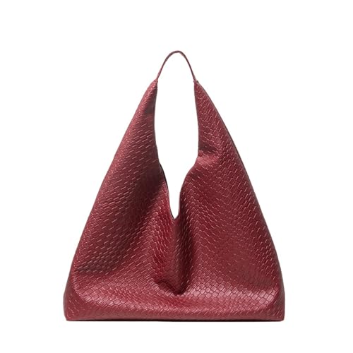 GYTTDERFL Sac En Cuir Tressé Sac bandoulière rétro simple, sac hobo minimaliste, sac de travail for femme, grand sac fourre-tout for femme, élégant, épicerie(Burgundy)
