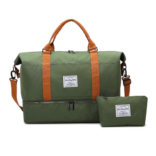 Balakaka Sac de Sport Homme Femme 51 x 25 x 34cm avec Petit Sac 25 x 6 x 14cm, avec Pochette pour Trolley, Imperméable Grande Sacs de Voyage avec Compartiments Chaussures et Humide, Vert armée