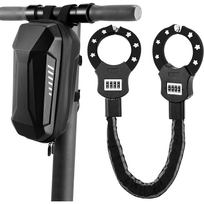 Antivol trotinette electrique, 8mm chaînes antivols velo, cadenas trotinette avec serrure à code avec sac de rangement étanche