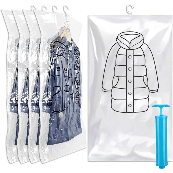 5 Pcs Sac Vetement Sous Vide Housse Rangement Sous Videuspendus Sac Sous Vide Vetement Sacs Sous Vide À Suspendre(70 * 110cm)