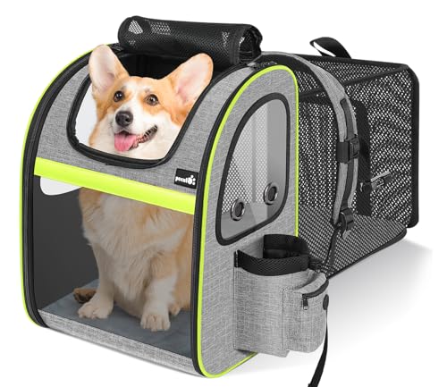 Pecute Sac Transport Chat Chiots Extensible Sac Dos pour Chien Petit Animal avec Matelas en Peluche Amovible, Filet Respirant, Spacieux, Pliable, pour Voyage en Train/Voiture/Restaurant