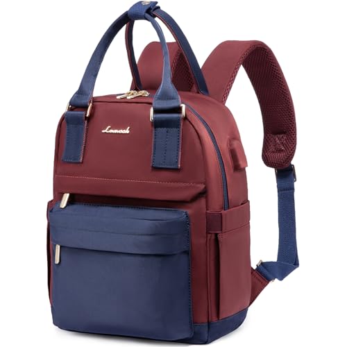 LOVEVOOK Petit Sac à Dos Femme, Mini Sacs à Main Portés dos Elegant Leger et Imperméable, Sac a Dos Voyage Antivol et Chic avec Port de Charge USB pour Voyage Loisir Collège, Bleu Marine Rouge foncé