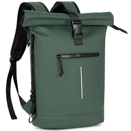 Lekeinchi Sac a Dos Etanche pour Femmes et Hommes, Grand Sac à Dos avec Compartiment pour Ordinateur Portable 17 Pouces, Elegant Sac à Dos Voyage pour Voyages, Travail, College - Vert Foncé