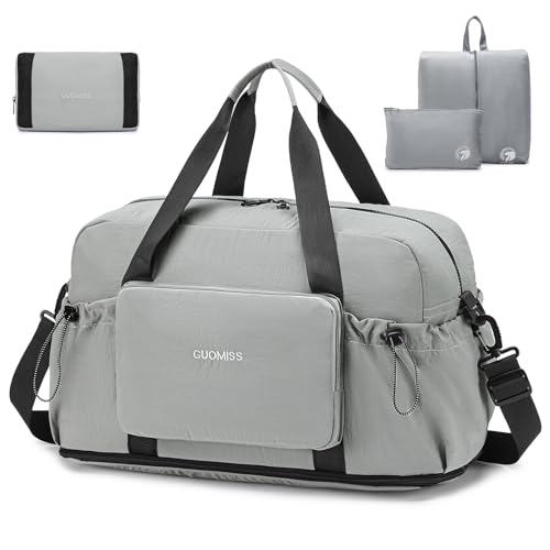 Paneerte Sac de Voyage Femme Sac Weekend Femme Sacs de Voyage Sac Voyage Pliable Sac Cabine Avion Sac de Voyage Sec Et Humide, Sac de Sport Adapté Au Sport Et Aux Voyages, Gris