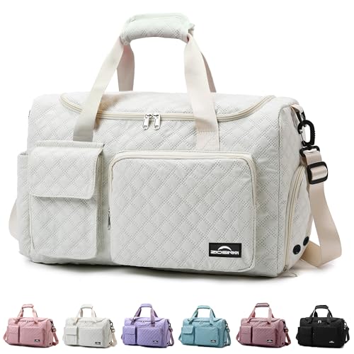ZIOSINM Sac de Voyage Femme, Sacs de Sport Imperméable, Sac Weekend Femme avec Compartiment Humide et Compartiment à Chaussures,pour Gym, Fitness, Weekend (Beige)