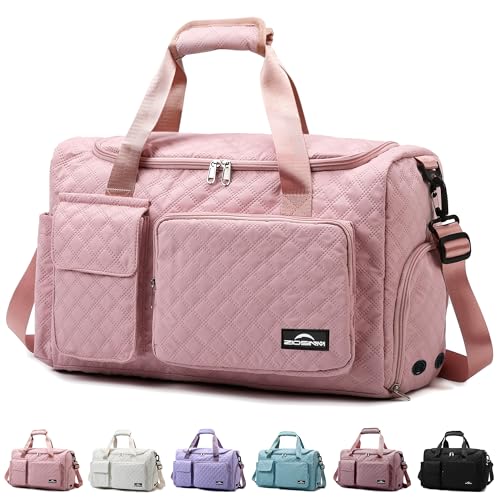 ZIOSINM Sac de Voyage Femme, Sacs de Sport Imperméable, Sac Weekend Femme avec Compartiment Humide et Compartiment à Chaussures,pour Gym, Fitness, Weekend (Rose)