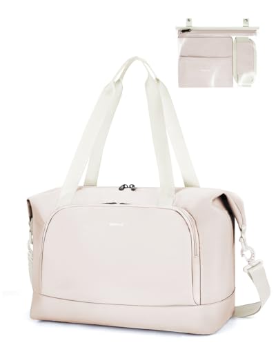 Sac de Weekend pour Femme, Sac de Voyage avec Compartiment à Chaussures, Grand Sac fourre-Tout de Voyage en Nylon, 2 - Beige, Large