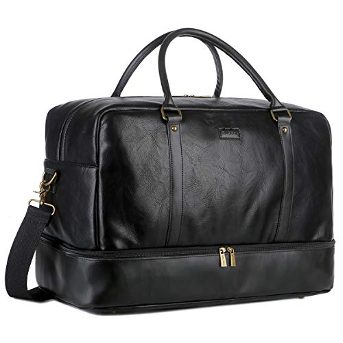 BAOSHA Grand Sac de Voyage en Cuir synthétique - Bagage à Main - Sac de Voyage - Sac de Weekend avec Compartiment à Chaussures pour Homme et Homme - HB-38, Noir, XL, Vintage, Utilitaire