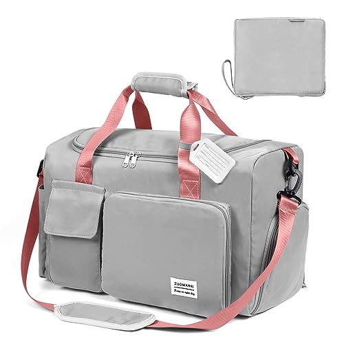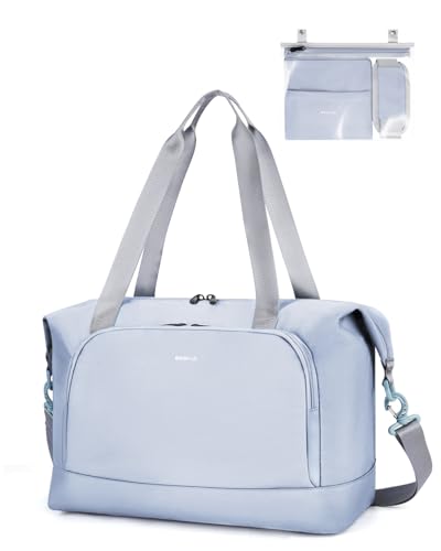 ECOHUB Sac de Voyage Femme, Bagages Cabine 45x36x20 Easyjet, Sac Voyage Cabine avec Amovible Poche Humide, Sac Avion Weekend, Bagage à Main Valise Léger Imperméable, d'Hôpital, Week-End, Gris-bleu,30L