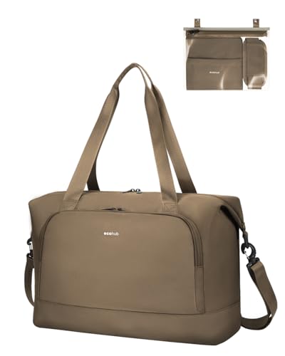 ECOHUB Sac de Voyage Femme, Bagages Cabine 45x36x20 Easyjet, Sac Voyage Cabine avec Amovible Poche Humide, Sac Avion Weekend, Bagage à Main Valise Léger Imperméable, d'Hôpital, Week-End, Marron, 30L