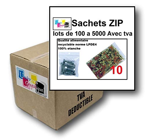 Lot de 500 Sachets 100 x 100 mm fermeture zip Transparent - Sachet fermeture zip 10 x 10 cm 50u sac plastique 10x10 compatible alimentaire et congélation de marque UNIVERS GRAPHIQUE REF UGS06-500
