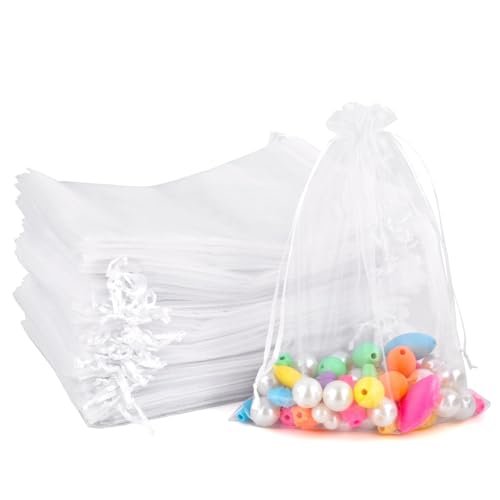LANGING 100 Pack Rose Poche en Organza Sac en Organza Sachet en Organza pour Cadeau Mariage et Bijou