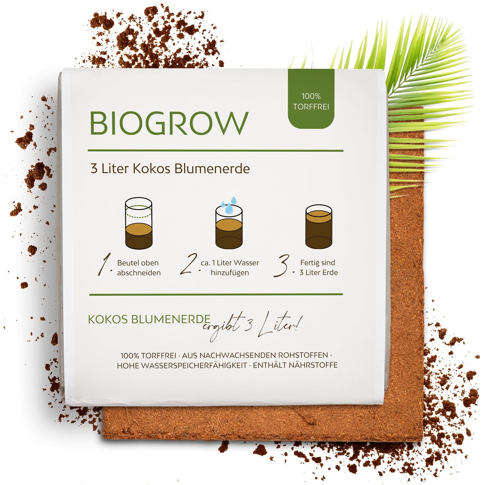 Terreau Bio à Base de Coco compressé dans Un Sachet Gonflable - Terreau biodégradable, sans Tourbe, composé à 100% de Fibres de Coco (3 litres, 1 pièce)