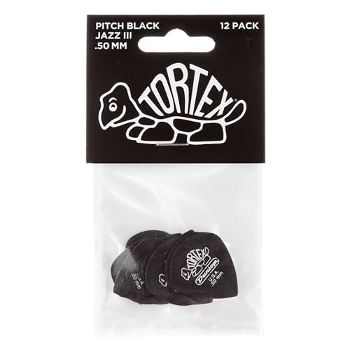 Dunlop 482P50 Médiators Tortex Pitch Black Jazz III 0,50mm sachet de 12