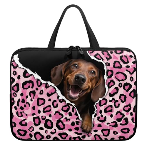 Surwin Housse pour Ordinateur Portable, Style Dessin Animé Housse Ordinateur Portable Imperméable avec Poignée et Fermeture Éclair Sacoche Laptop (Teckel,17 Pouces)