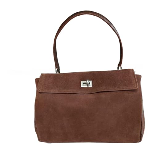 ITRHJTGP Sac en Daim Marron Sac à main en cuir suédé for femme, sacoche tendance(Brown Silver buckle,29cm-10cm-20cm)