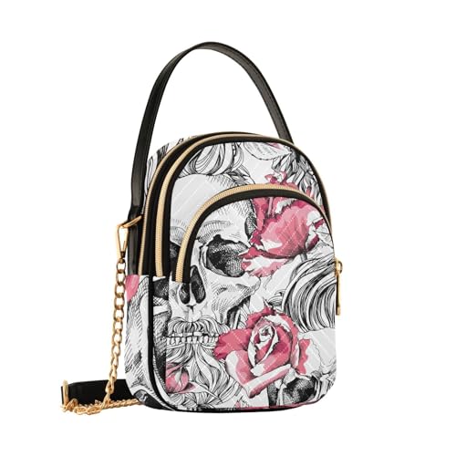 Mnsruu Sac à bandoulière Sacoche Petit Sac pour femme avec motif tête de mort gothique squelette sac à main en cuir synthétique avec plusieurs poches réglables, A415, Small