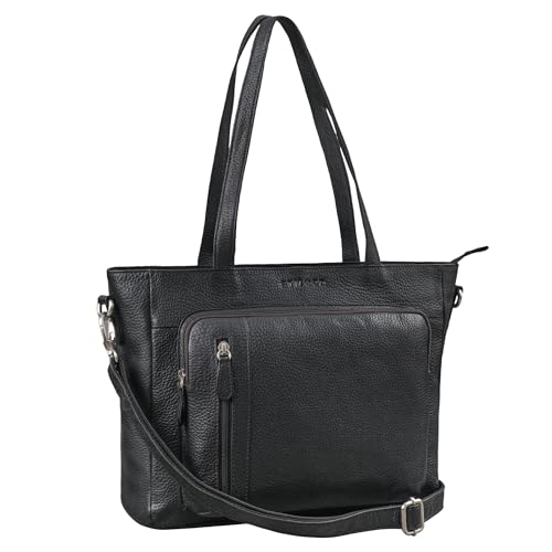 STILORD 'Doro' 3-en-1 Vintage Sac a Main Femme Cuir Sac Bandoulière Grand Tote Bag Sac Cabas Shopper Cuir Véritable Sacoche Femme sac ordi portable, Couleur:noir