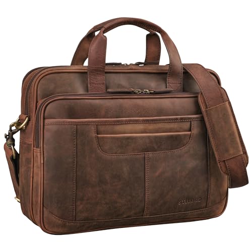 STILORD "Graham Sacoche Ordinateur 15.6 Pouces Cuir Étroit Cartable Cuir Véritable Sac Ordi Portable Grand Sac Bandoulière Pc Portable avec Sangle Amovible Homme & Femme Couleur:zamora - marron
