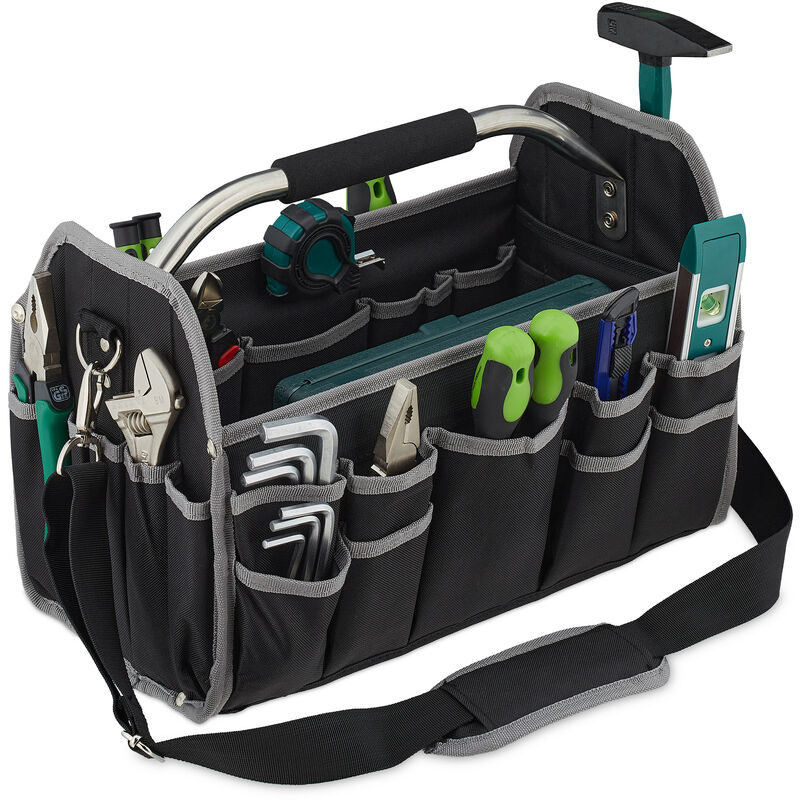 Sacoche à outils, sacoche, matériel de bricolage, dessus ouvert, artisan, h x l x p : 30 x 42 x 23 cm, noir - Relaxdays