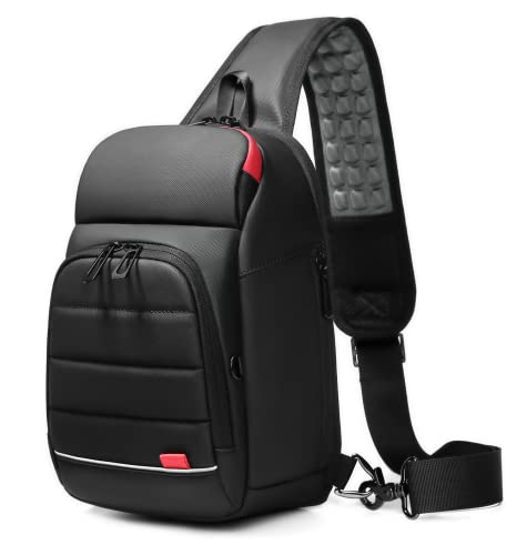 GYakeog Sacoche Homme Bandouliere Imperméable Sac de Poitrine avec Port de Chargement USB Sacoche Ventrale pour Sport Randonnée Business Vélo Travail-Noir