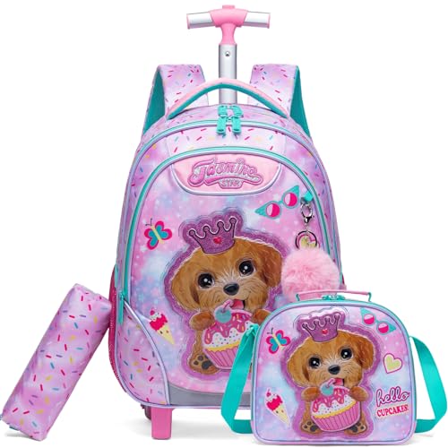 Egchescebo Sac a Dos Enfant Roulette Fille Primaire Valise École Maternelle Sacs à D'école pour Voyage Cabine de Bagages 17" 3PCS Ensemble Grand Cartable Étudiant Simple Animal Violet