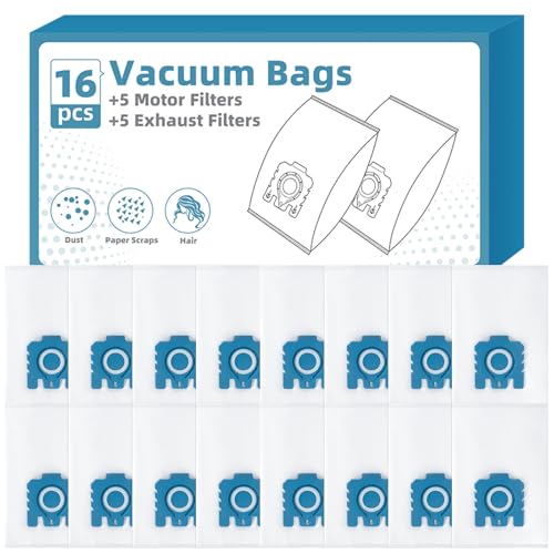 Lot de 16 Sacs à Poussière pour Aspirateurs Miele [Classic C1 / Complete C2 & C3, Série S2, S4, S5, S6, S8] avec 5 Filtres Moteurs et 5 Filtres D'échappement, Remplace 9917730 12281680