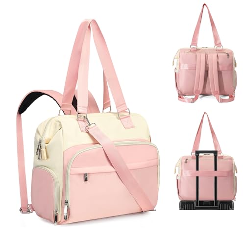 Fexkean Sac à Langer,Grand Sacs Bébé à langer pour Imperméable,Portable Sac à bandoulière,Sacs à dos de voyage pour bébé avec bretelles avec Matelas à Langer(3039-Pink&Beige)
