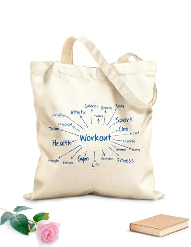 XIARON Sacs de courses en polyester et coton Activité physique, entraînement, santé, corps, coach, énergie tissu épais de 340g/m² Réutilisable M Vert bleuâtre