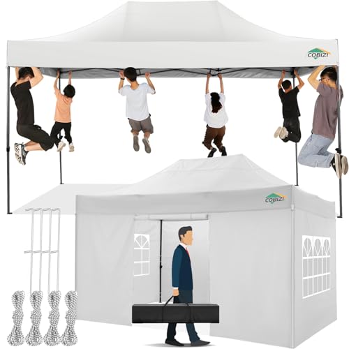 COBIZI Tonnelle 3 x 3 m - Imperméable et Stable - Pliable - avec 4 Panneaux latéraux, 4 Sacs de Sable et aération - Protection UV 50+ - Pliable - pour extérieur et Jardin - Blanc