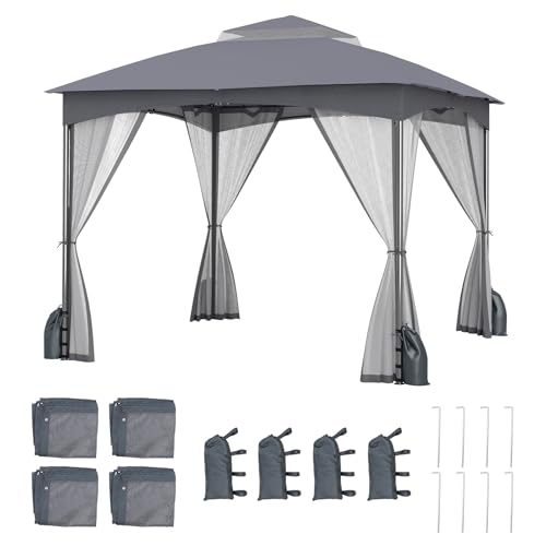 GOPLUS Tonnelle de Jardin Exterieur 3 x 3 m avec Moustiquaire, Lestage Poids, Pergola de Jardin Pliant Toit Double Ventilé, Piquets de Sol et 4 Sacs de Sable (3x3M|Gris)