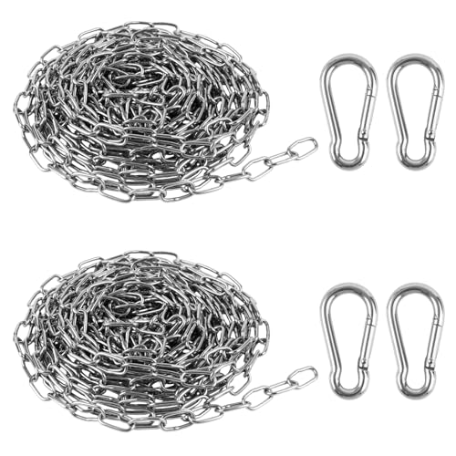 2 Pièces Chaîne en Acier Inoxydable, 1,5mm*10m Chaine Acier avec 4 Mousqueton, Chaine Inox pour Clôture, Fauteuils Suspendus, Hamacs, Sacs De Sable Et Chaîne De Chien, Charge Maximale de 15KG