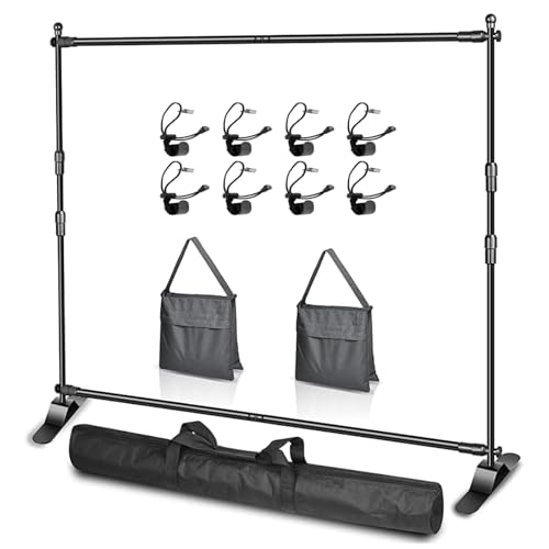 EMART Support Toile de Fond Photo 3 x 2,4 m, Banner Stand Réglable avec 2 Sacs de Sable et Paquet de Transport pour Studio, Portrait et Photographie de Produits