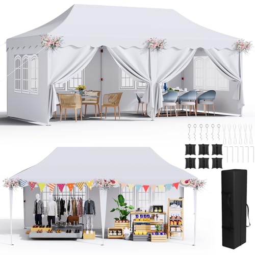 3x6 Tonnelle de Jardin Exterieur, Tonnelle Pliante 3 x 6 Imperméable avec 6 Parois Latérales,Tente Hauteur Réglable,UV 50+,avec 12 Clous de Sol 6PCS Sacs de Sable, pour Fête/Festival/Camping, Blanc