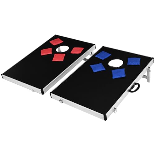 GOPLUS Jeu de Cornhole, 2 Plateaux de Jeu, 8 Sacs de Sable et 1 Sac, Ensemble de Jeu en Alliage d'Aluminium, Jeu Classique de Plateau Pliable avec Poignée Portable, 90 × 60 × 28 cm
