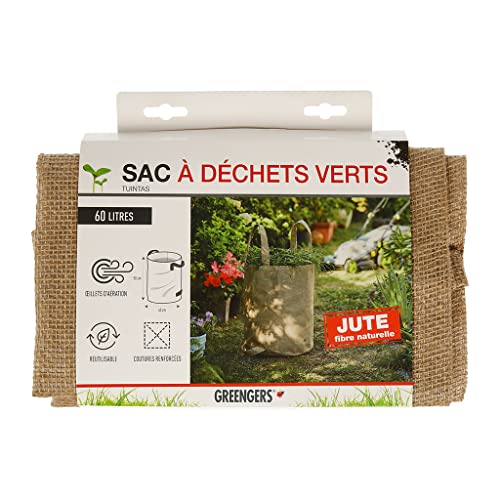 Greengers - Sacs à déchets de jardin, Jardin - Sac à déchets verts en fibre naturelle 60L, Sac à déchets de jardin 60L, Sac jardinage déchets 60L - 1 Sac - 4 Poignées, Sac résistant - ø40 x H50cm