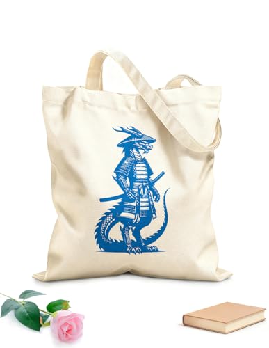 AILOONG Sacs femme en toile de coton Dragon samouraï en armure, debout en position de combat, brandissant un katana. tissu épais de 340g/m² Matière douce pour la peau