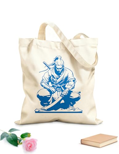 XIARON Sacs femme en calicot guerrier ninja agenouillé avec un katana en position d'action tissu épais de 340g/m² Pliable M Bleu