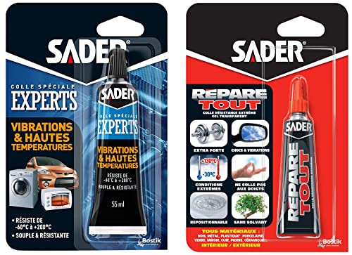Sader Colle Vibrations et Hautes Températures - Souple Extra Forte Transparente Tube 55 ml & Multi-Usages Répare Tout - Extra Forte Tous Matériaux Tube 20 g