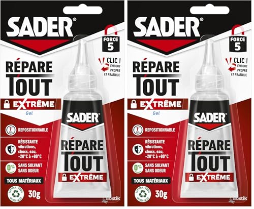 Sader Répare Tout Extrême Clic – Colle Extra Forte Tous Matériaux – Intérieur/Extérieur – Colle de Réparation/Bricolage – Sans odeur et Sans Solvant – Transparente – Tube de 30 g (avec fermeture clic)