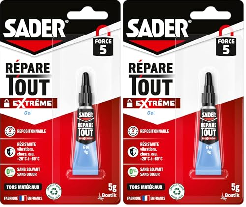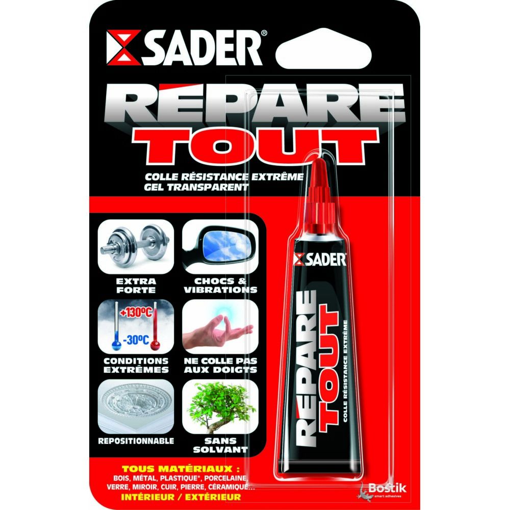 Colle SADER gel multi-usages répare tout extra forte tous matériaux tube 20g