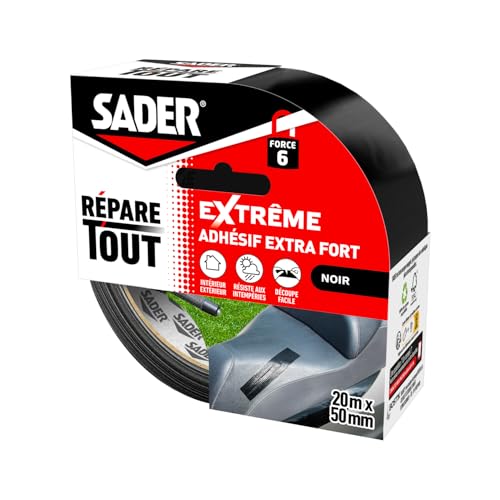Adhésif extra fort - SADER - Repare tout extrême - Intérieur & Exterieur - Toutes surfaces - Noir - Facile à découper - 20 m x 50 mm