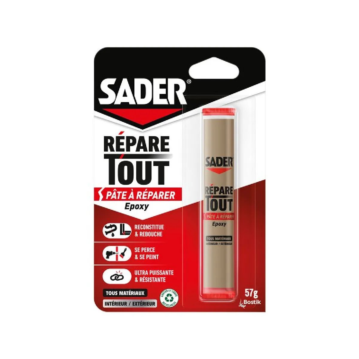 Sader Répare Tout - Pâte à Réparer Epoxy - Tous Matériaux – Intérieur/Extérieur – Couleur : Gris – 1 Tube 57 g 30621068