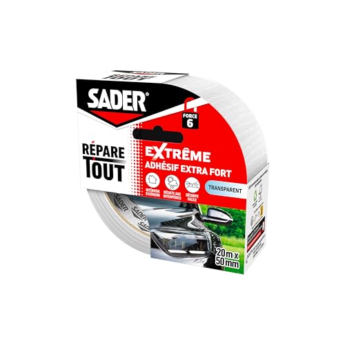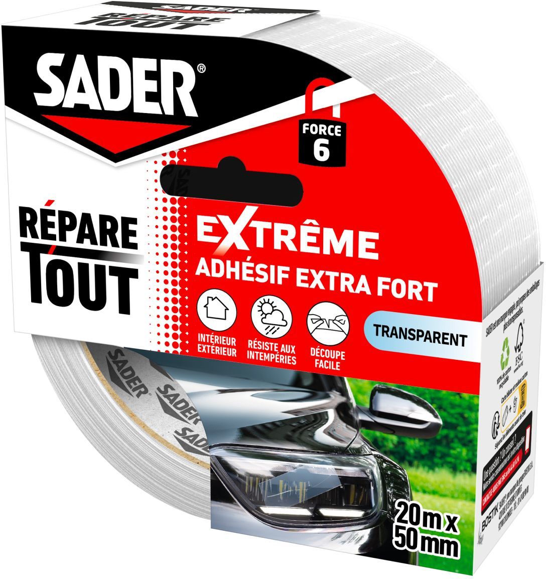 Adhésif extra fort - SADER - Repare tout extrême - Transparent - Intérieur & Exterieur - Toutes Surfaces - 20 m x 50 mm