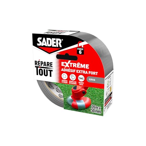 Adhésif extra fort - SADER - Repare tout extrême - Gris - Intérieur & Exterieur - Toutes surfaces - Facile à découper - 20 m x 50 mm