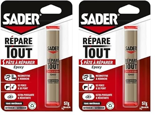 Sader Répare Tout - Pâte à Réparer Epoxy - Tous Matériaux – Intérieur/Extérieur – Couleur : Gris – 1 Tube 57 g 30621068 (Lot de 2)