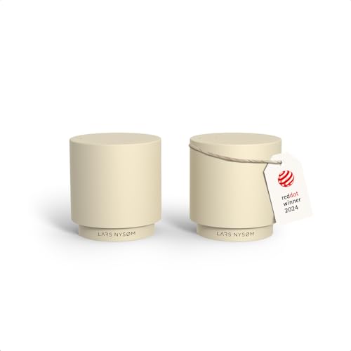 LARS NYSØM Salière et poivrière en acier inoxydable au design moderne et minimaliste, recharge facile (Almond Beige)