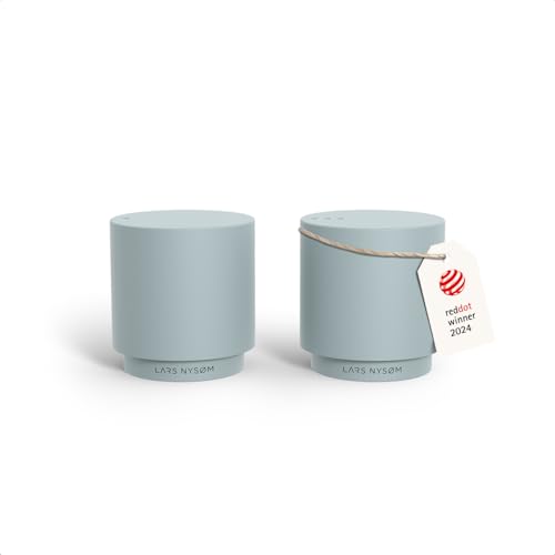 LARS NYSØM Salière et poivrière en acier inoxydable au design moderne et minimaliste, recharge facile (Sky Blue)