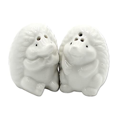 Ensemble salière et poivrière en poly, blanc, motif : hérisson, magnétique, taille L/l/H : environ 6 x 4 x 6 cm
